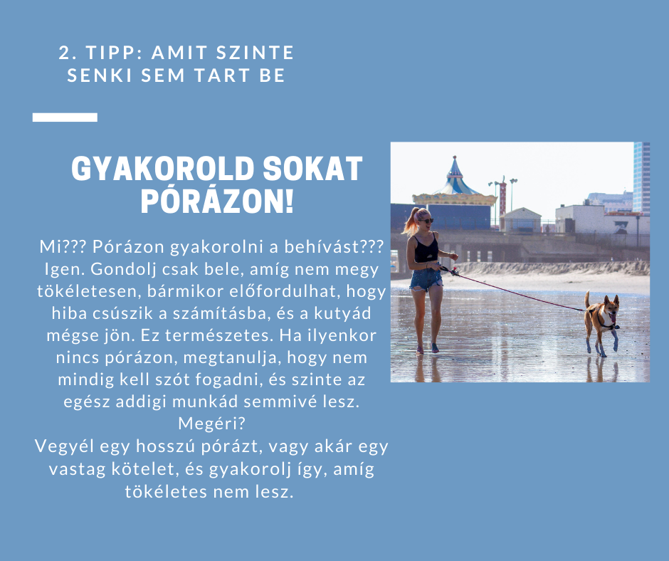 - Minden helyzetben póráz nélkül engedjük a kutyánkat, pedig a behívásunk még gyerekcipőben jár... így a kutya megtanulja, hogy nem muszáj szót fogadni