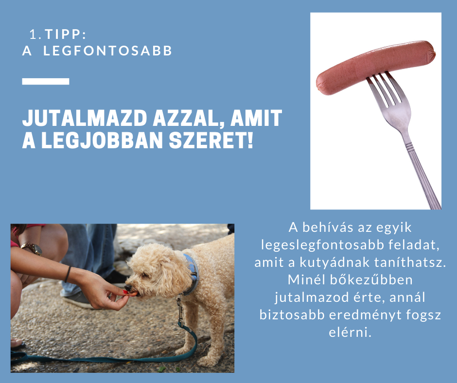 A behívás az egyik legfontosabb feladat, amit a kutyádnak taníthatsz. Ha szárazeledelt vagy kutyakekszet használsz jutalmazásra, akkor nem várhatsz el olyan lelkesedést, mintha mondjuk a tegnapról maradt sült húst viszed magaddal a tréningre. Ennyi.